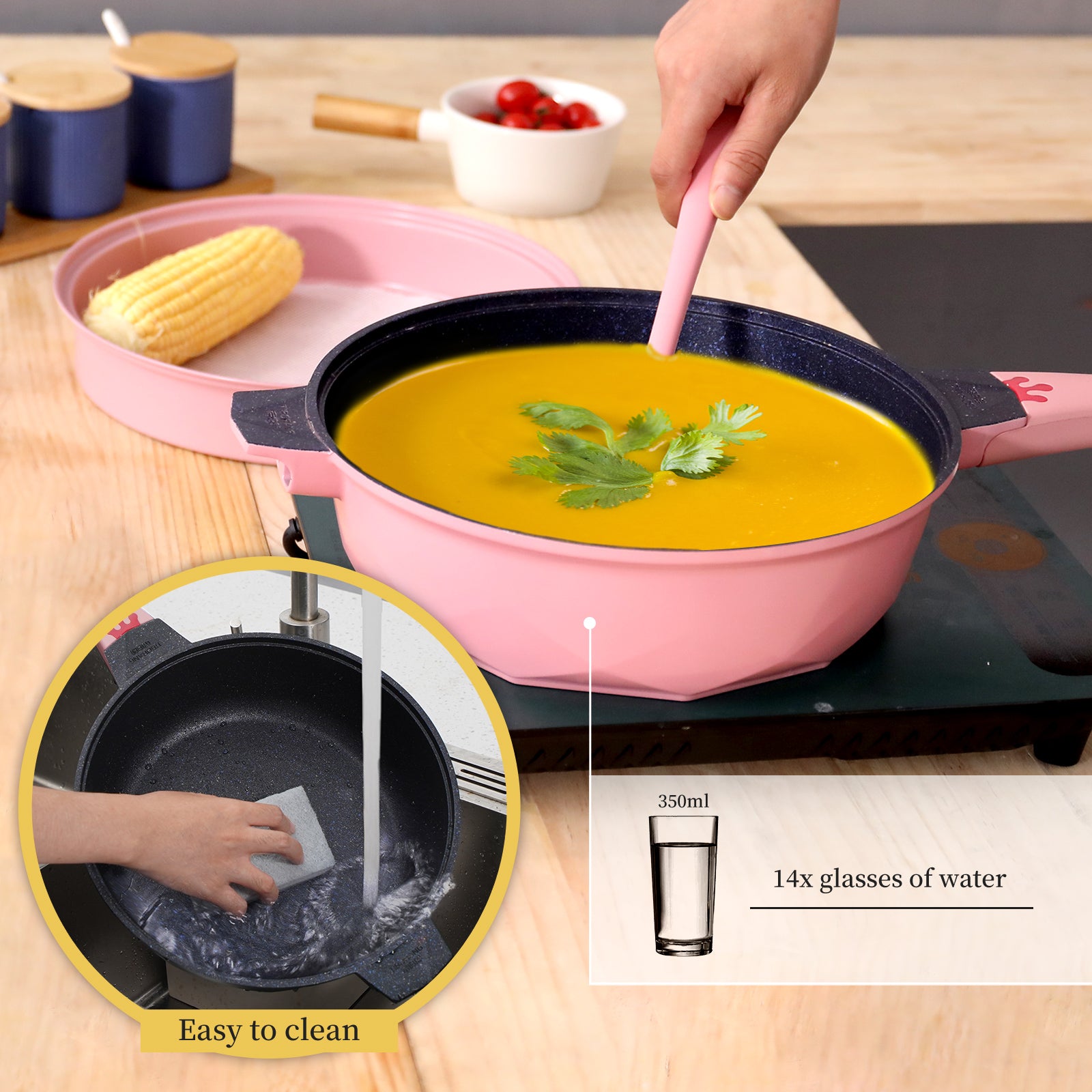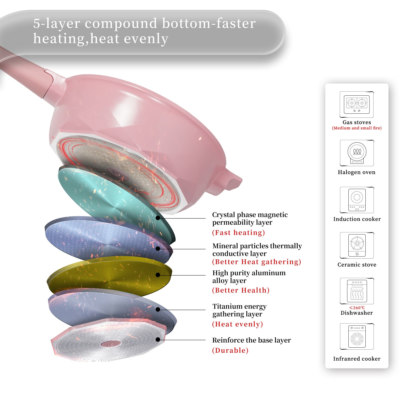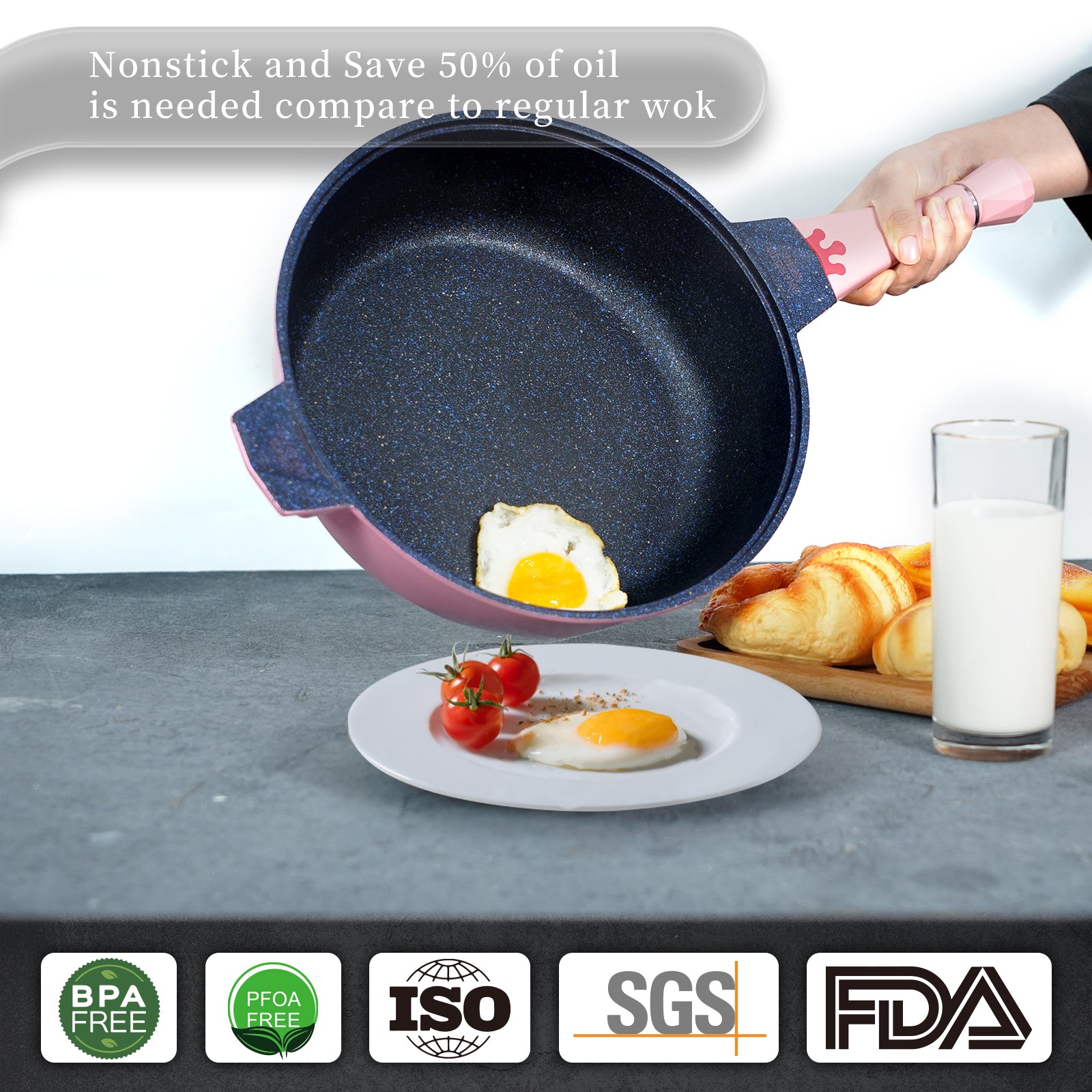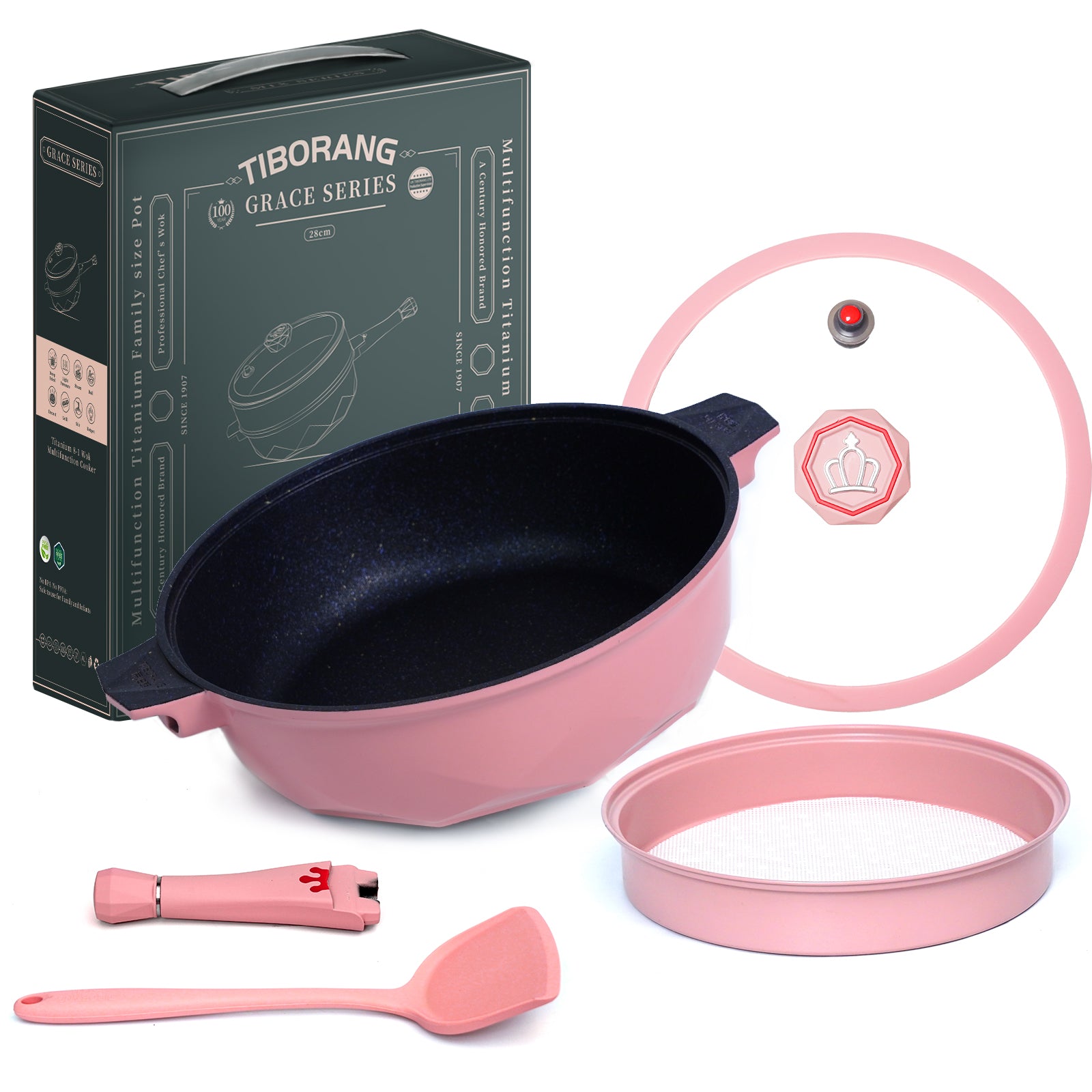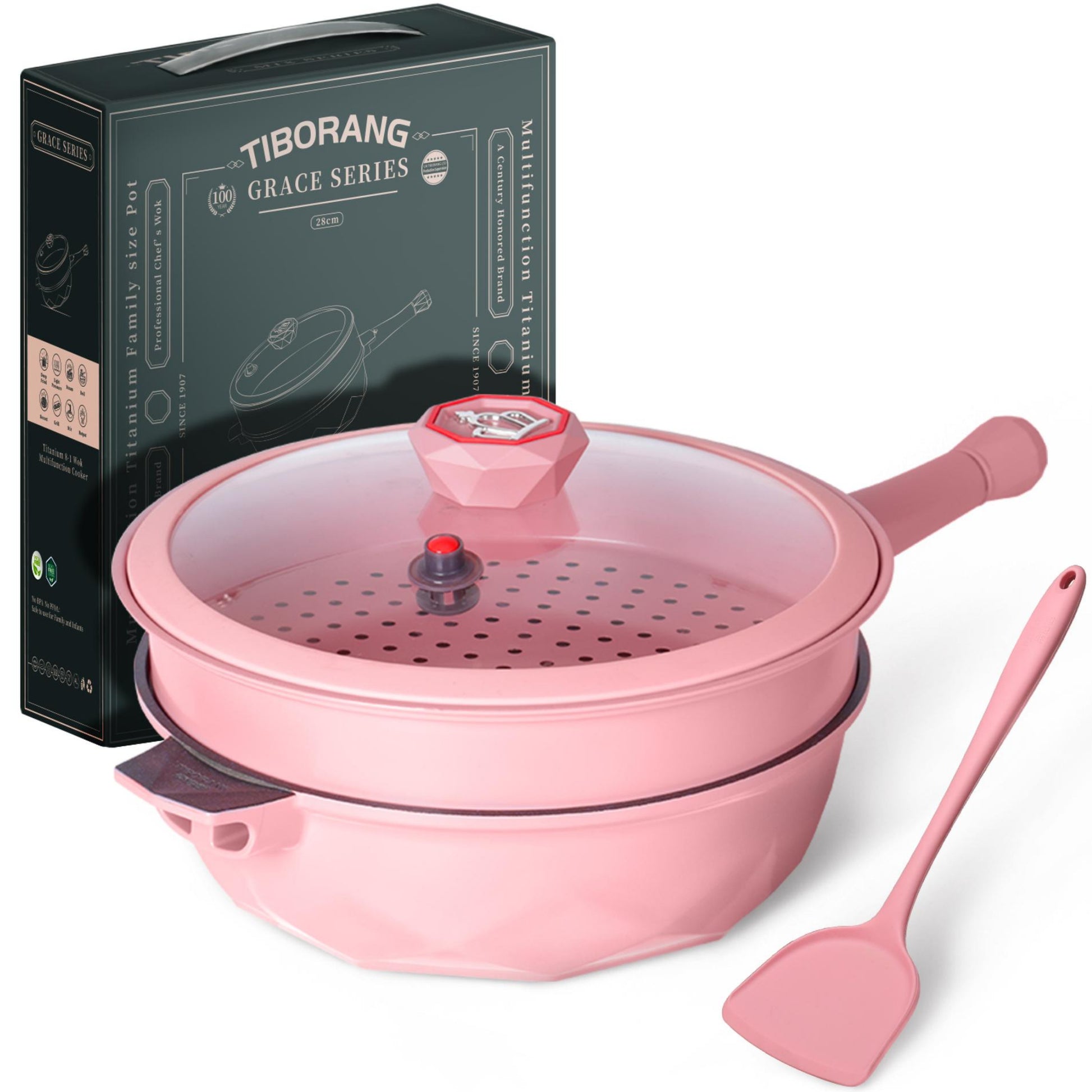 Tiborang 11 inches pink nonstick 5 quarts 8 in 1 multifunctional pan with rounded knob