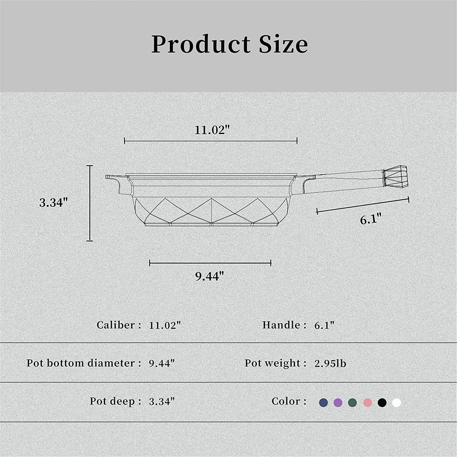 Exclusive Design: The fry pan is designed by the state of art architect. Pan bottom comes with diamond pattern and stainless steel 5-layer compound bottom that gives faster heating. The heat conduction efficiency can be 3x higher than the efficiency of ordinary pan's bottom.