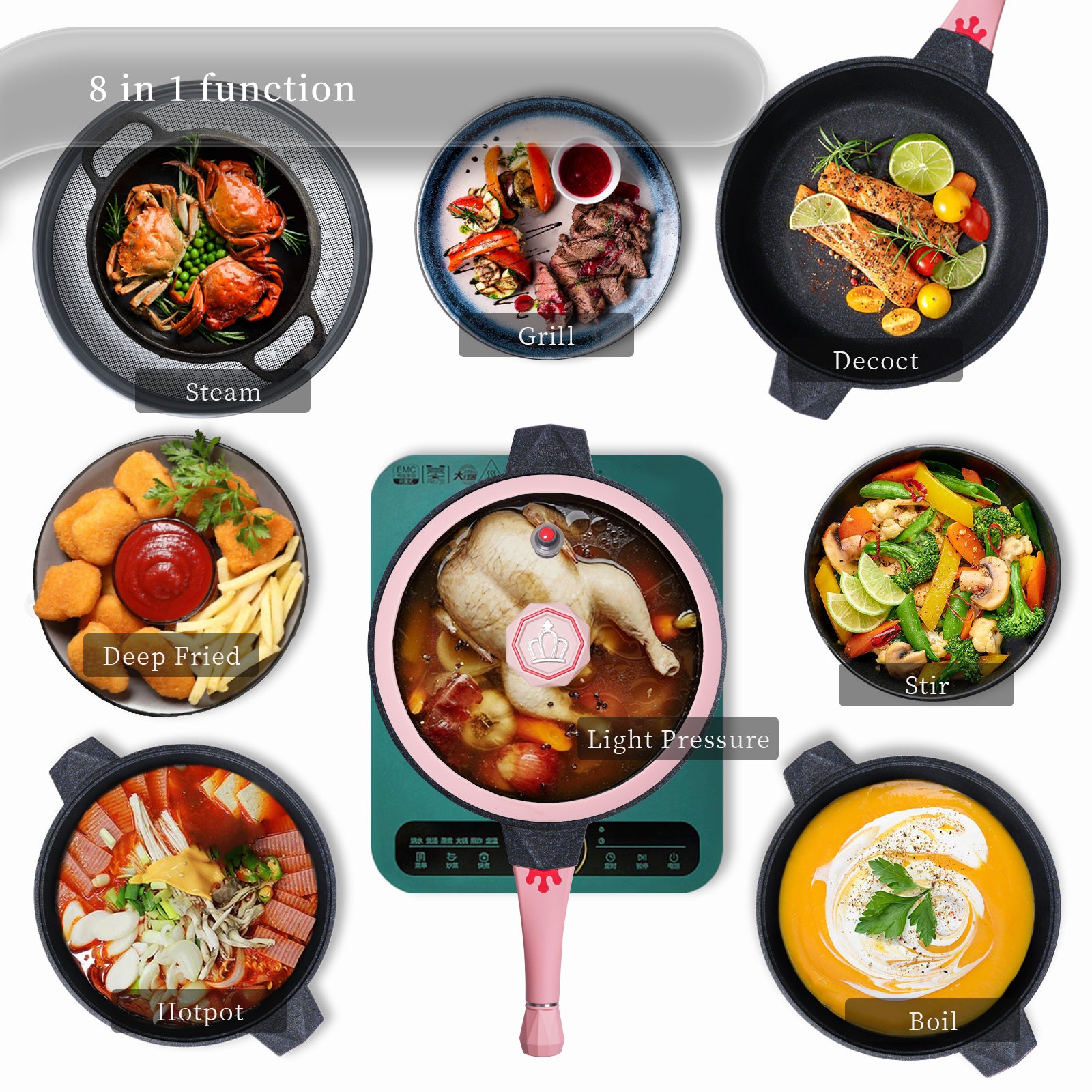 Multifunction: The nonstick frying pan is suitable for Deep Fried, Light Pressure Cooking, Steam, Boil, Decoct, Bake, Stir and Hotpot. You can even use it to steam vegetables. It makes cooking fun and inventive.